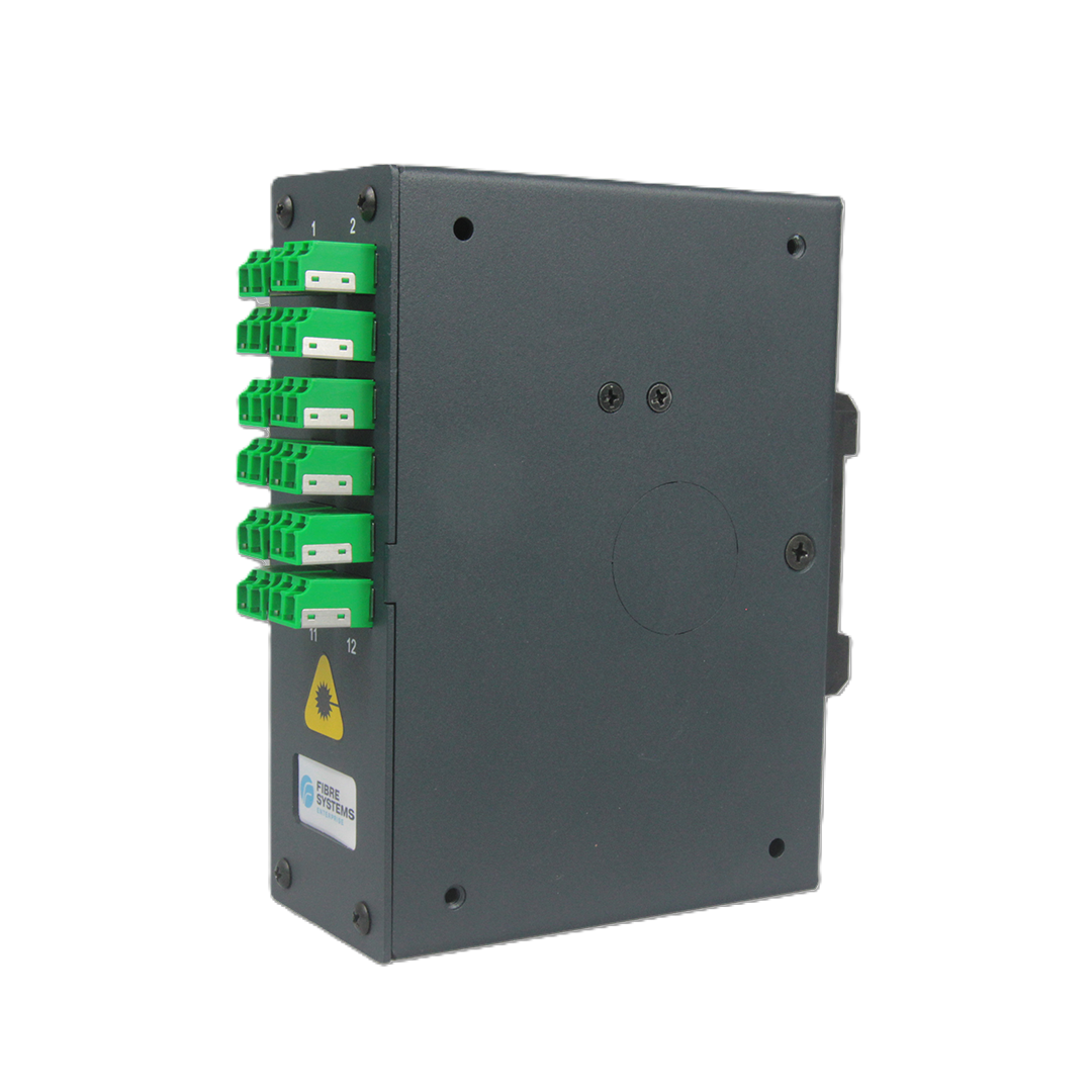 Compact DIN Enclosure LC/APC Duplex Shuttered 06 / 12 / 24  Port Patch Configuration