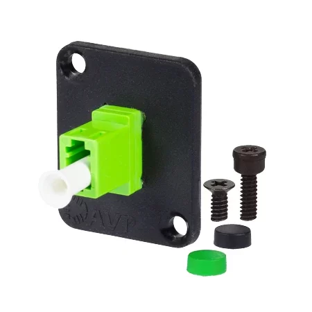AVP Maxxum LC/APC Singlemode Simplex Green, Fibre Optic Panel Mount Feed-thru, Green and/or Hardware, Black and Green MIS Colour-Code Caps included.